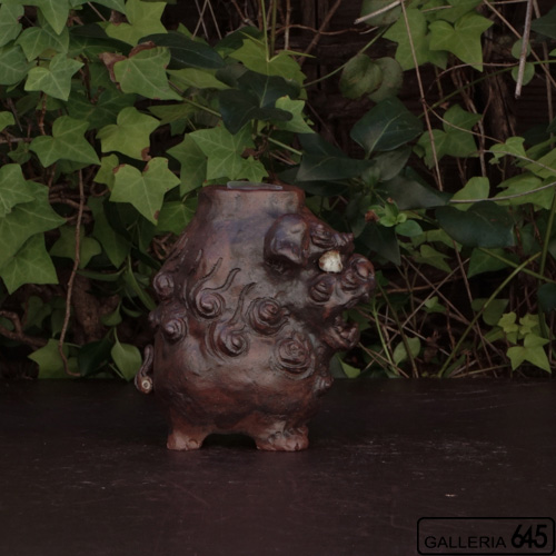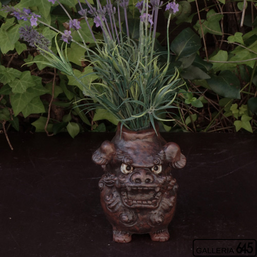 凛々しくめちゃ可愛い焼締シーサーの花入れです。