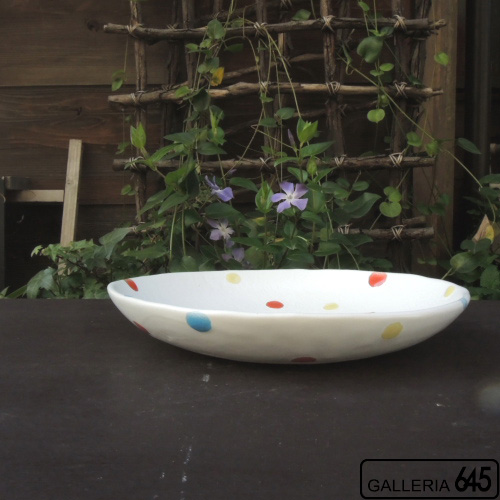 赤、青、緑、黄色、黒とさまざまな色のドットがきれいです。